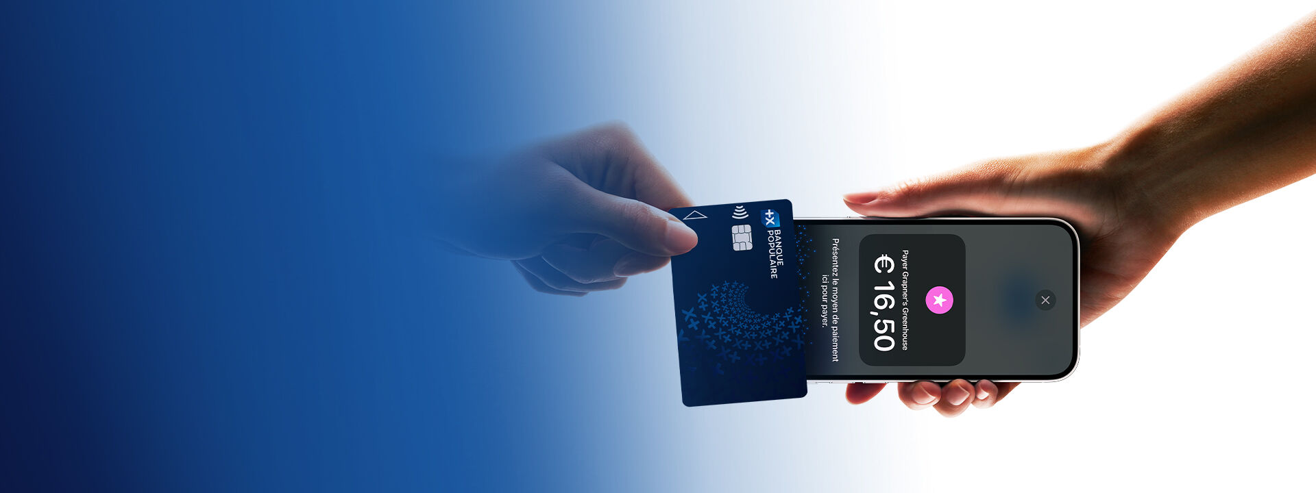 (3)Offre soumise à condition. La possibilité de souscrire en ligne à l’offre Tap to Pay n’est possible que si vous n’êtes pas déjà titulaire d’un contrat monétique auprès de votre Banque Populaire