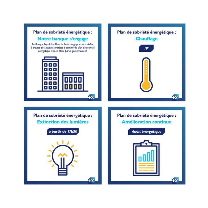 Dans le cadre du plan de sobriété énergétique du Gouvernement, le Groupe BPCE a signé le 11 Octobre 2022 la charte Ecowatt s’engageant à réduire sa consommation énergétique de 10% d’ici 2024.